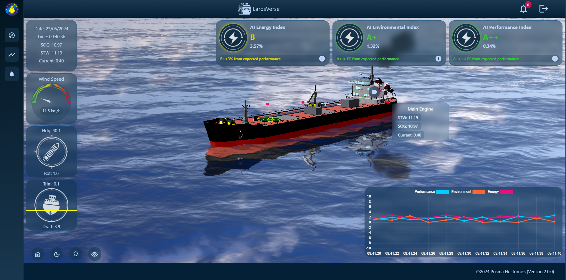 The software then analyzes the processed data to optimize and forecast key performance indicators (KPIs) relevant to maritime operations, such as engine performance, fuel consumption, and route efficiency.