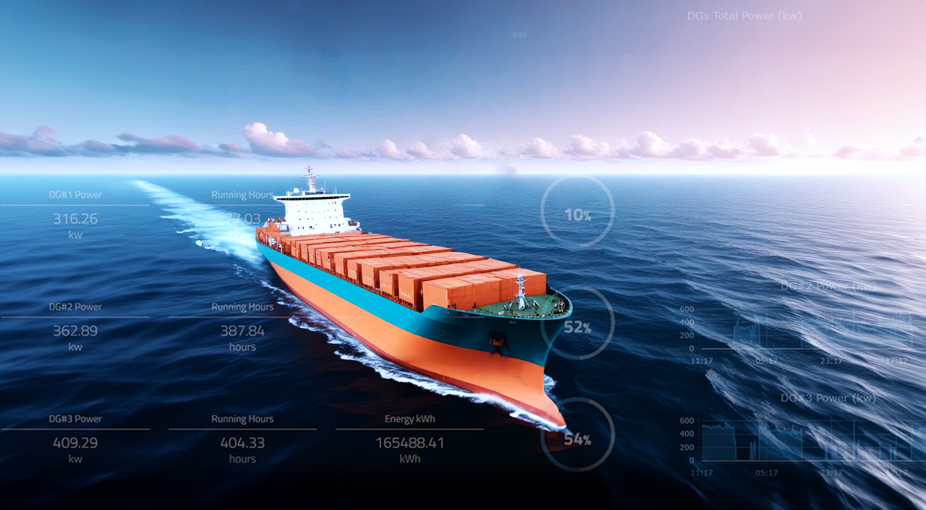 Finally, the insights and optimized KPIs are presented through a user-friendly dashboard. This allows for easy visualization and monitoring of the ship’s performance, accessible via PC, tablet, or mobile phone, ensuring fleet managers have their ships at their fingertips.